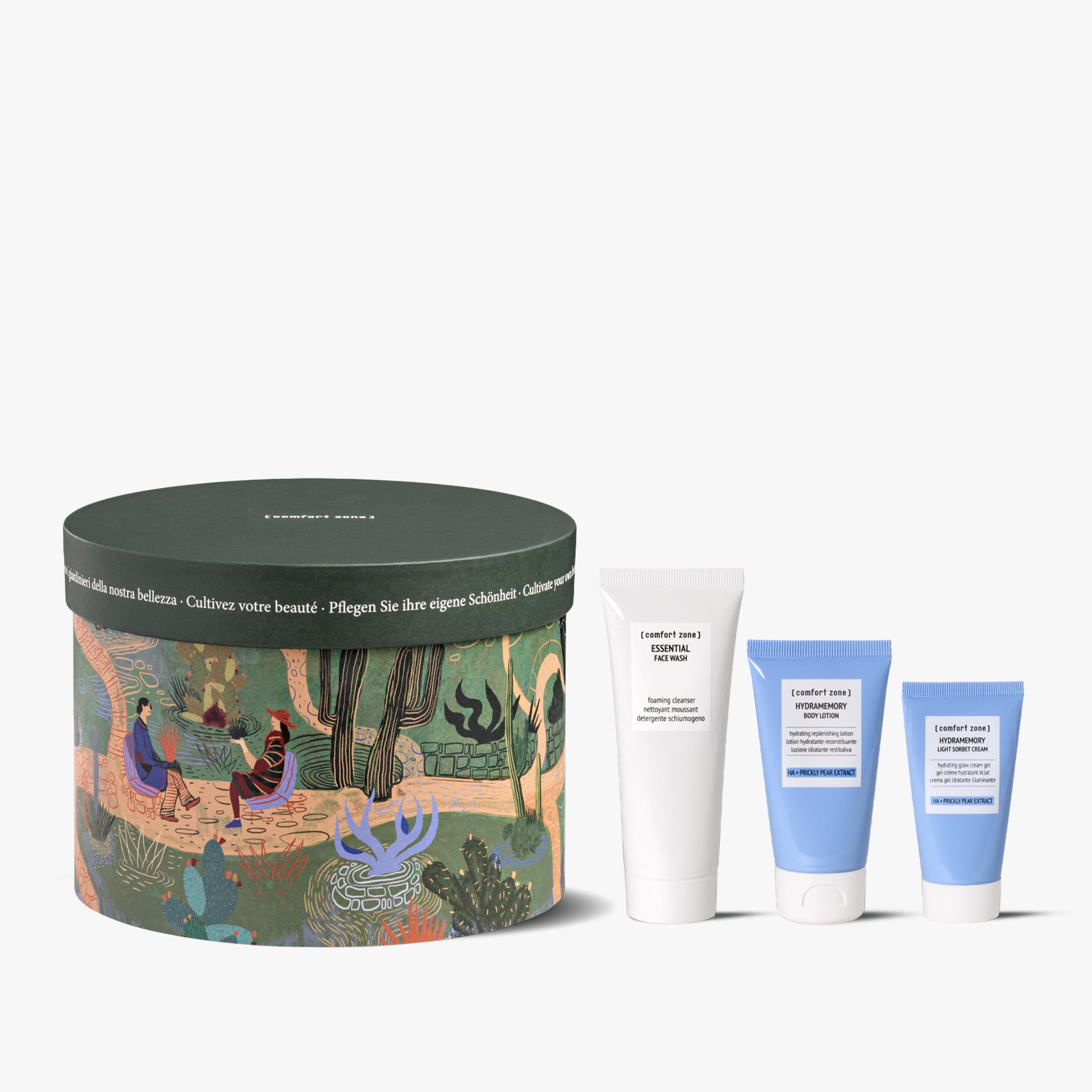 + vedi tutti gli ingredientiESSENTIAL FACE WASH: creare una schiuma morbida miscelando il prodotto con acqua. Massaggiare e risciacquare. Evitare il contatto con gli occhi. HYDRAMEMORY LIGHT SORBET CREAM: applicare mattina e sera su viso e collo dopo il siero. Massaggiare fino a completo assorbimento. HYDRAMEMORY BODY LOTION: applicare ogni giorno su tutto il corpo e massaggiare fino a completo assorbimento.